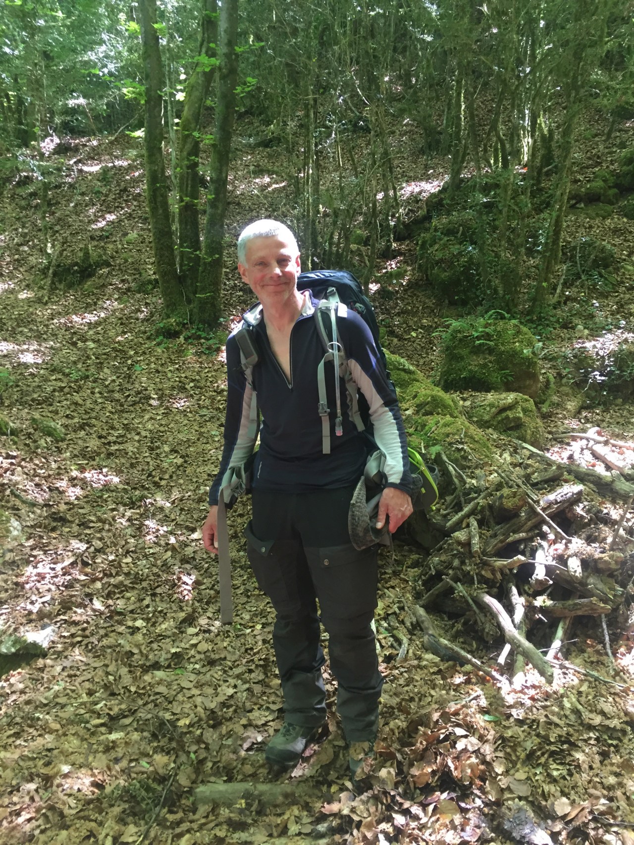 Vanmorgen werd ik om 8 uur wakker en….weg Paul! Met tarp en al. Briefje in de auto: I walk 2 etappes today, so meet me in ….
