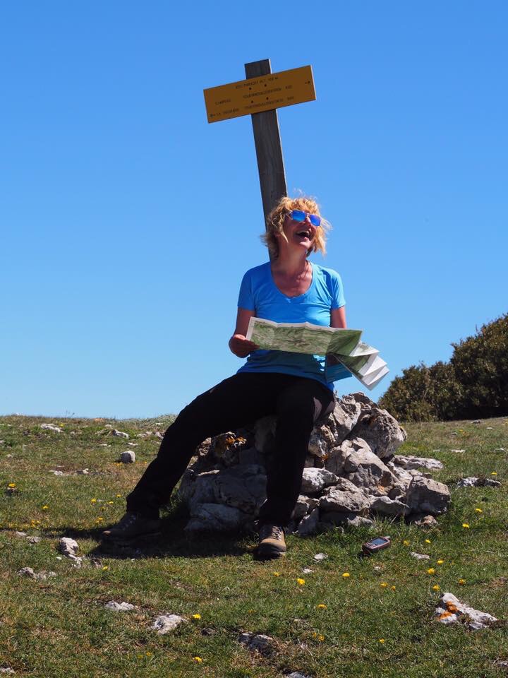 Er is iets in mij dat, hoe onervaren ik ook ben, toch naar de bergen wil. Wellicht totaal niet realistisch. Maar omringd zijn door machtige bergketens geeft me een sterk gevoel. Ik ken het klimmen naar cols alleen uit mijn wielrenjaren, een bergbeklimmer met touwen en ijzers zal ik nooit meer worden. Leren skieën na mijn 40e was al geen onverdeeld succes meer, leren klimmen na mijn 50e begin ik niet eens meer aan. Leren wielrennen na mijn 40e ging daarentegen best aardig, heeft me ook nooit echt blessures bezorgd. Waarom ben ik daar eigenlijk mee gestopt? Omdat de relatie met de wielrenman stopte? Wandelen is rustiger…wielrennen is meer sporten…en toch voeg ik er al snel weer een “prestatie-element” aan toe, dat gaat vanzelf. De behoefte om iets te bereiken blijft bestaan.