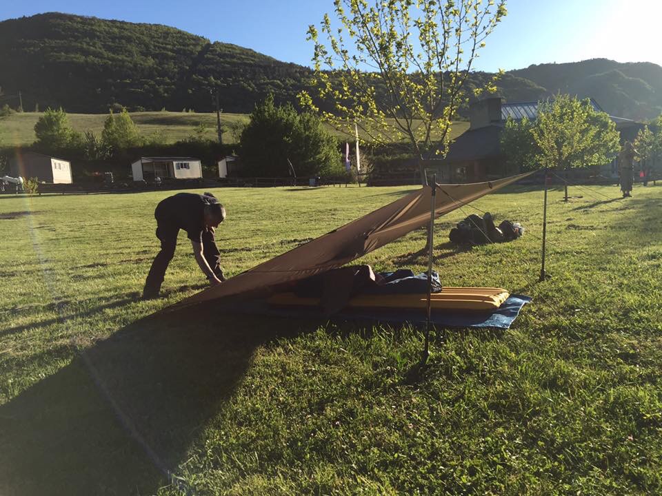 6-mei-2016 Katharentocht dag 6 en 7. Ik zit op dag 8 in mijn tentje op de ochtend van vertrek terug naar Nederland. Geen ontbijt meer, net mijn laatste Nespresso-oploskoffietje genuttigd en in de verre omtrek hier níks te krijgen. Altijd gaan mijn gedachtes dan vooruit naar Canada…stel ik zit daar, hoe zorg ik altijd voor noodvoer? …Nu ga ik gewoon als Paul onder zijn tarp vandaag is gekropen bij hem schooien, hij heeft altijd nog vanalles. Dag 6 was de eerste ochtend met zon. Wat een heerlijk gevoel meteen.