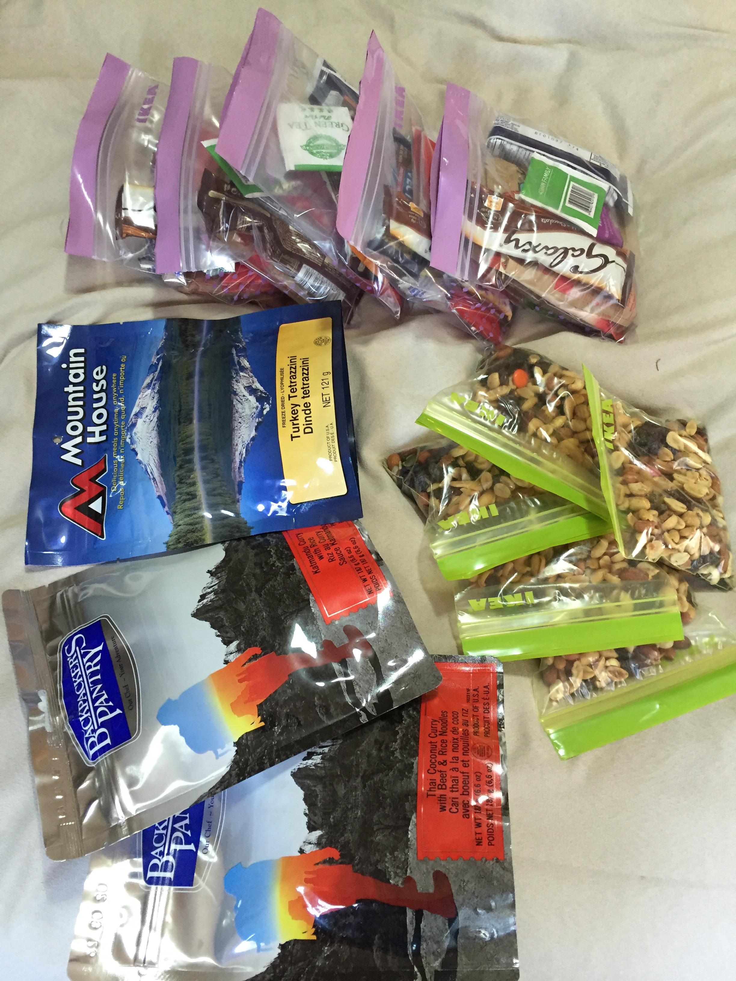 I made my 3 kilo food for my first 5-days-backpacktrail. It looks very organised, not? Breakfast, lunch and dinners, yammie! No wine, no candy’s or cookies, no snacks….