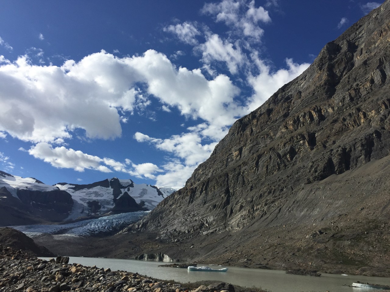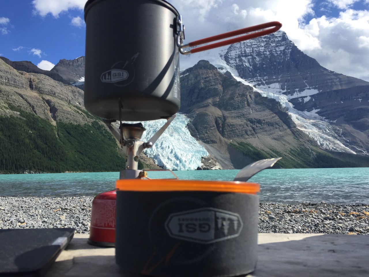 BerglakeArrived already at 1pm at the Berglake Campground, pitched the tent. Knee was perfect today, 10 km mountain up. And now relaxing at this fabulous spot already for hours! Do not feel like swimming in this lake…the glacier is too close.