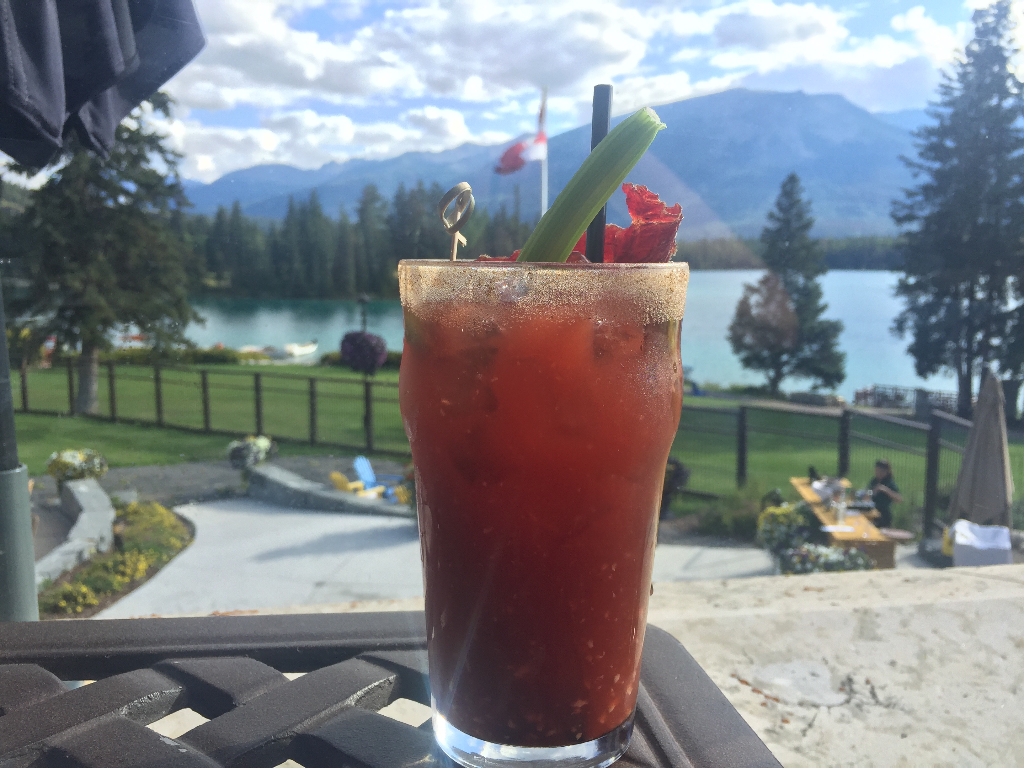 The sun came out, a beautiful Lake, our own servant and a splendid Something Ceasar cocktail! I ate my first Bison burger..and was in súch a good mood.