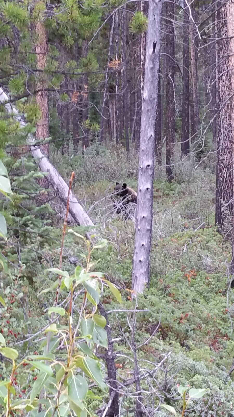 My new young friend with young eyes spotted him or her in the bush. I stopped the car, drove back and we both got out carefully. With shaking hands we tried to make pictures. First my car starts to make sirene-sounds because I got out and keys stayed in. I couldn’t get the keys out because I was só nervous. You want to make a picture só badly that it was a hilarious situation. And when I was taking a video and Bear looked up and looked me in the eyes, I started to whisper very nervous….omg he saw us…omg is he coming??…my video makes some strange moves there. But Bear was not interested in us at all and wiggled away. Pretty quickly in fact. We both had not one normal picture…