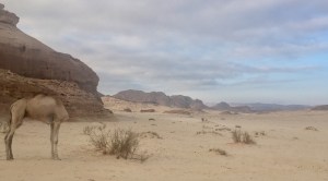 Dan kom er vanuit de verte een loslopende kameel aanlopen. Ohjé, een wilde kameel? Wordt dit spannend?