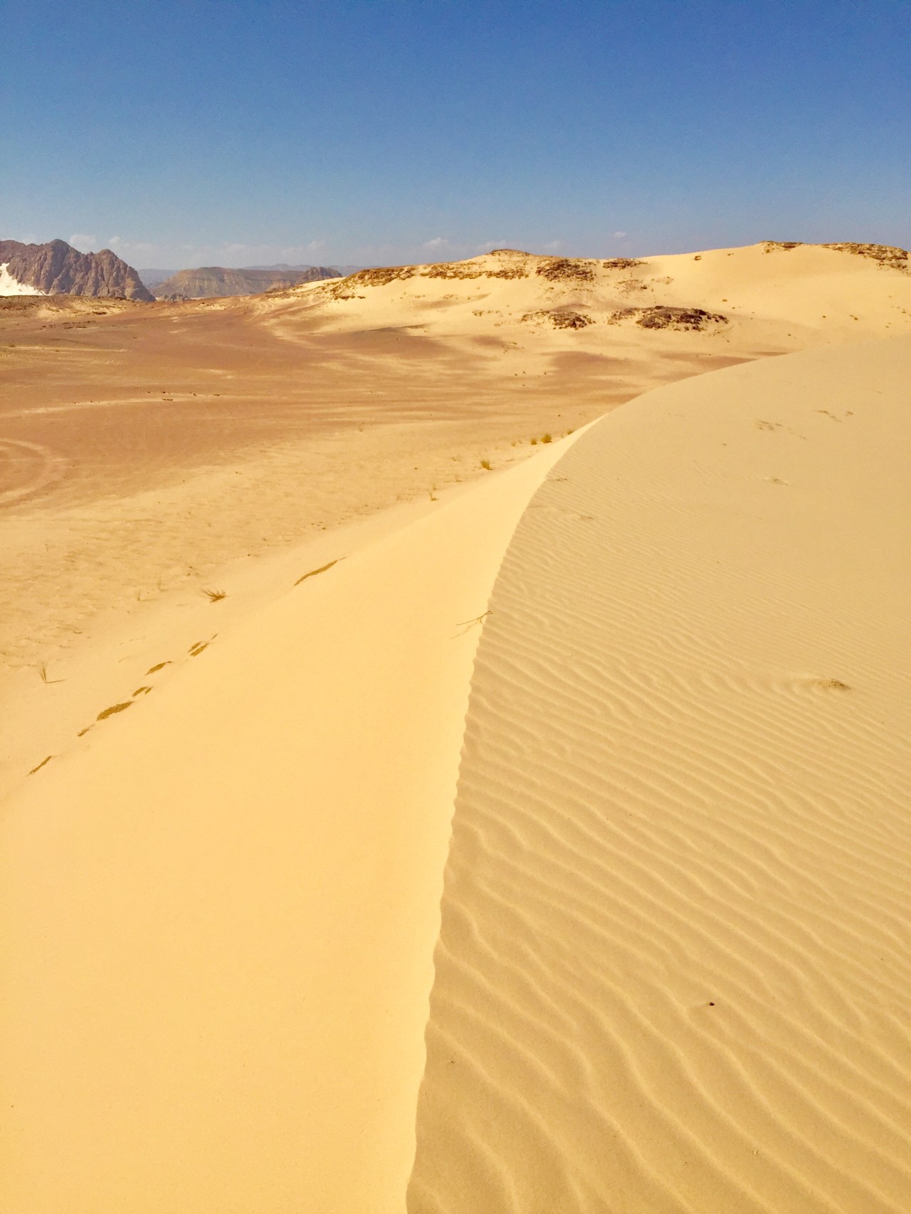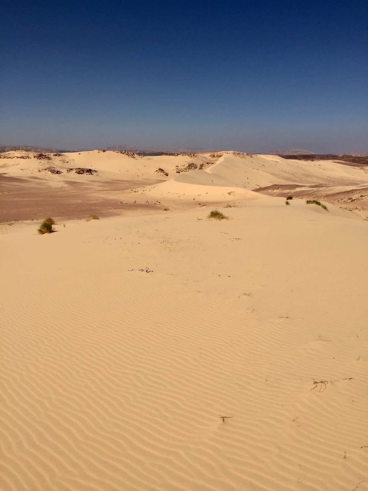 We stoppen, stappen af en Awèd wijst mij waar ik heen moet. Hij denkt nu echt mij naar alle zandduinen te moeten sturen binnen ons bereik. Eigenlijk heb ik niet heel veel fut om in die hitte met cameratas die heuvel over te moeten maar kan nu moeilijk niet gaan. Dus hup, water mee en ik vertrek naar een zandduin met een scherpe graad (het is wel 40°C denk ik), “aan de andere kant zijn dunes”, zegt ie nog es…. volgens mij. En yep, over de eerste heuvel zie ik in de verte de rand zich al aftekenen.
