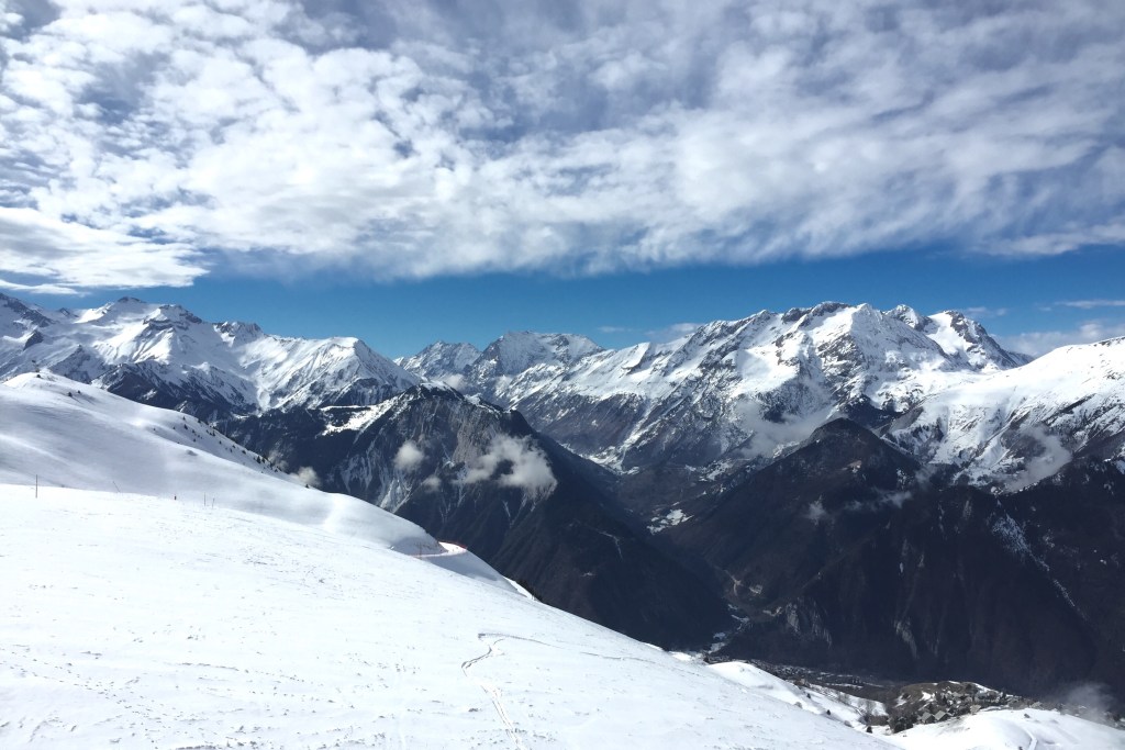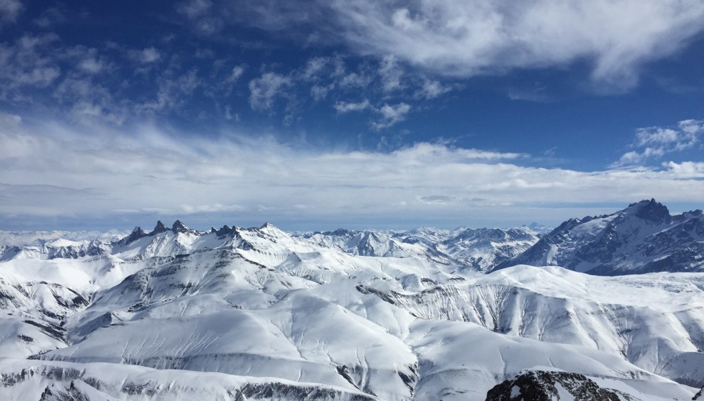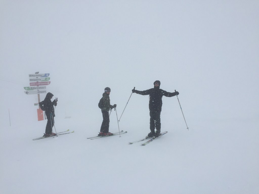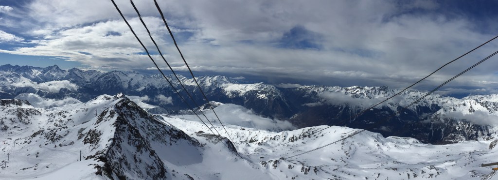 The second skiday we started with perfect sunny weather. What a beautiful views! You can go up here to 3330m to Pic Blanc, to ski down on a nice black way back. NO WAY for me, I only went there to inhale the view. I haven’t seen the Alpes so stretched out down below me before. I realized I have not been in the Alpes for quite a while and it was always on a racebike. I do not know what the highest climb was I ever did (Col du Galibier at 2646 m?) but I have never seen this white mountainrange around me…all the peaks everywhere you look, it’s amazing.