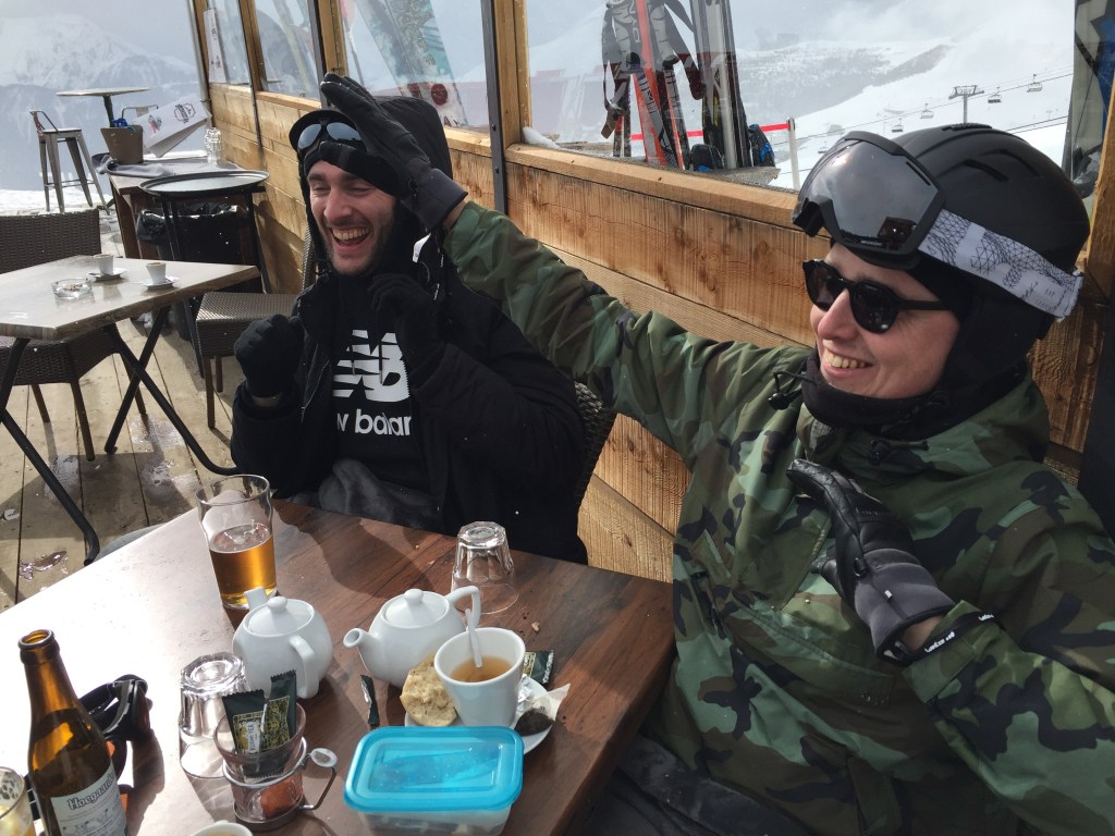 It is a whole hussle and dussle to get up there. At the second skiday it maybe goes a bit faster than the first one, but still…i think frequently how strenuous it in fact is, specially for the not so experienced ones. I can compare all the effort it takes to get on your skies first up hill and then back down again with hiking fully packed to the summit. For me the big difference is being out of control on a pair of skies every unexpected moment, I think it is going great and all of a sudden Whhhaaaaaa….. too fast…Well, keep in mind it is still on a blue or green one haha, so how fast can you go? But being out of control every time again downhill, or even not on a slope at all, or even without ski’s under the ski shoes, going down for a pee…. I do not think that skiing will ever gonna be totally in control and relaxing for me. But…I am outside, I am with good company and when you down smoothly and ín control, you feel awesome!