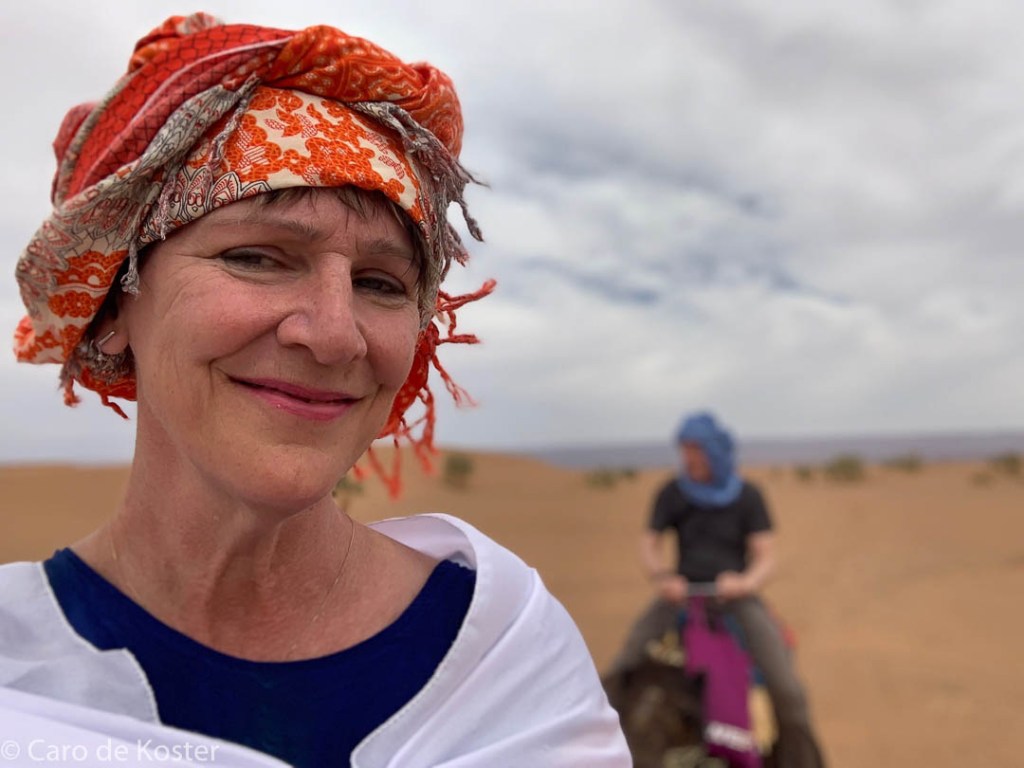 Mohammed told us that the government was planning to build a tarmac road from M’hamid into the desert along these Erg Chegaga sand dunes. This would definitely means the end of the charm and the beginning of the noise and busses full with kwetterende Chinesen. Wifi will then be provided, such as electricity, toilets and showers (and wine). The Berbers themselves, who grew up in this area, are trying to stop this. My Berbercampguy said that they succeeded, the plans were stopped. They know pretty well that richer people will take over the camps, families from Marrakesh he said, rich families….They are trying already now. Well, I am glad we were there in time, I loved it, despite off all the sand in every spot. We did not have enough time to leave the camp on a camel and make a trip for a week or so, maybe i come back for that another year, I still would love to do that again. We did a little touristic ride on somebody’s else camels, meant nothing, was a stupid thing to do, the berberboy did not speak any word French or English, walked with us a few hundred meters and was highly not interested. We signed him to go back.