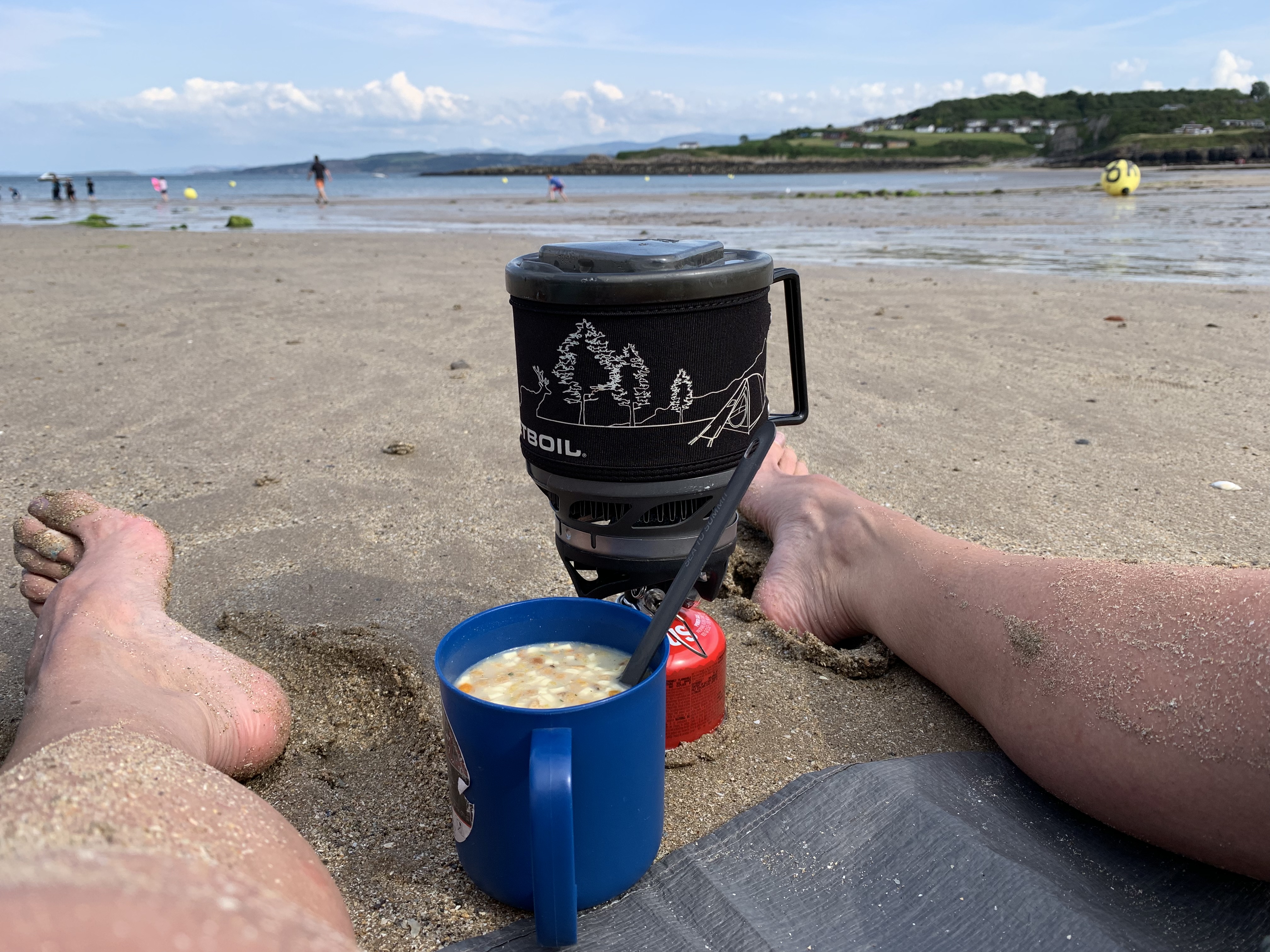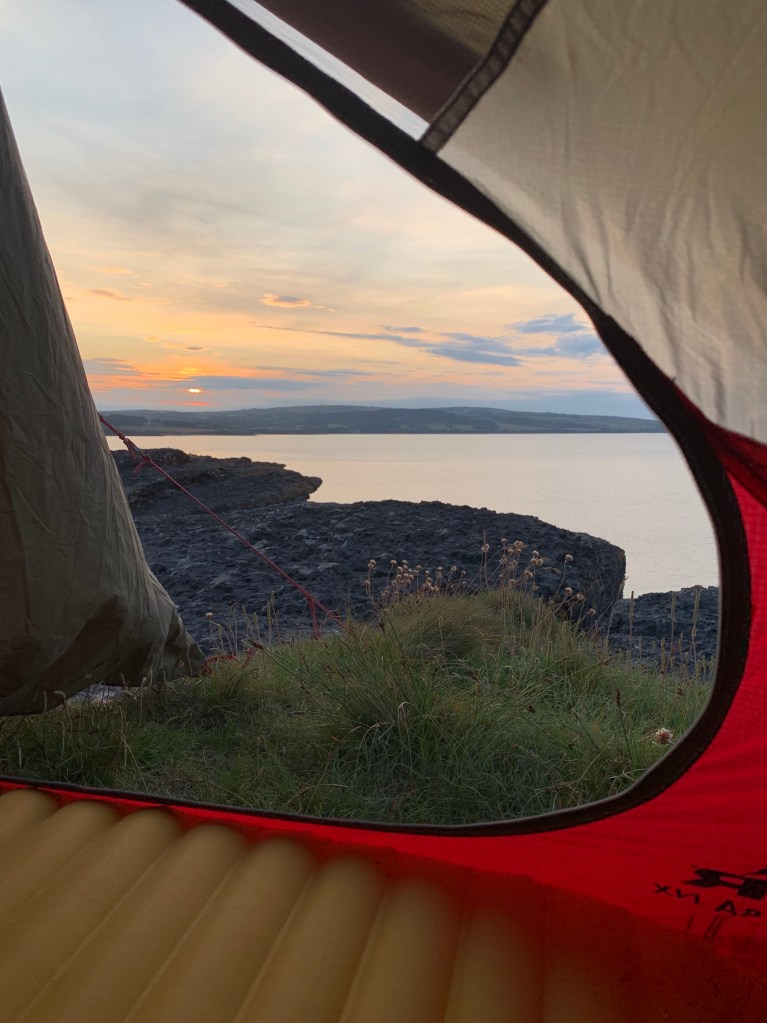 I woke up by the sun. You cannot imagine how happy that can make me, zipping open my tent, see the sun, the sea, the rocks, green field and nothing else…oh yeah…never forget the screaming seagull….They were everywhere this 5 days. Pee a few meters away in the grass, make my coffee…and the staring begins…Just staring in the sea, with my Nespresso cappucino (would be nice if there was a link now to Nespresso and they payed me a fortune for that….have to work on that one).