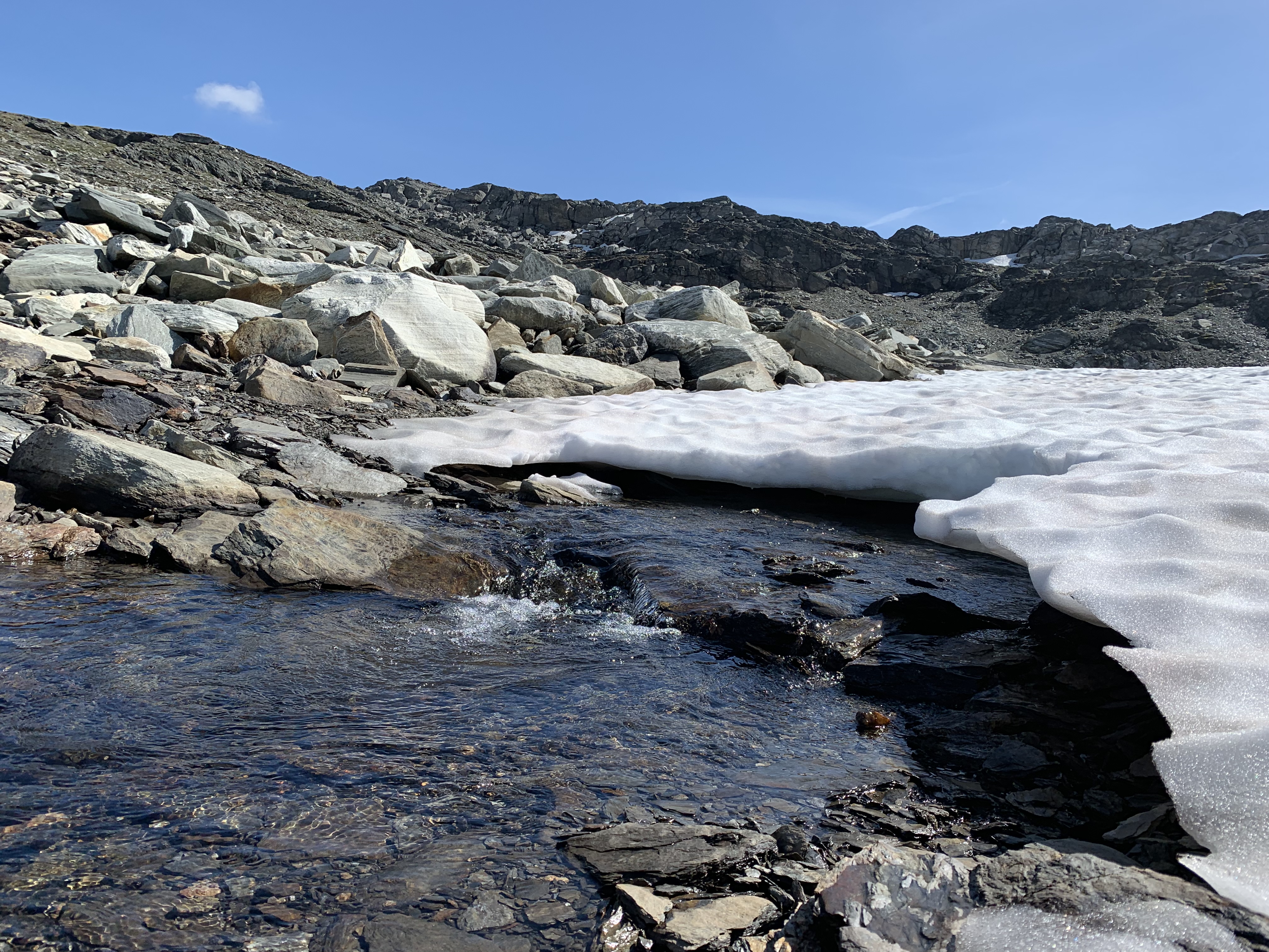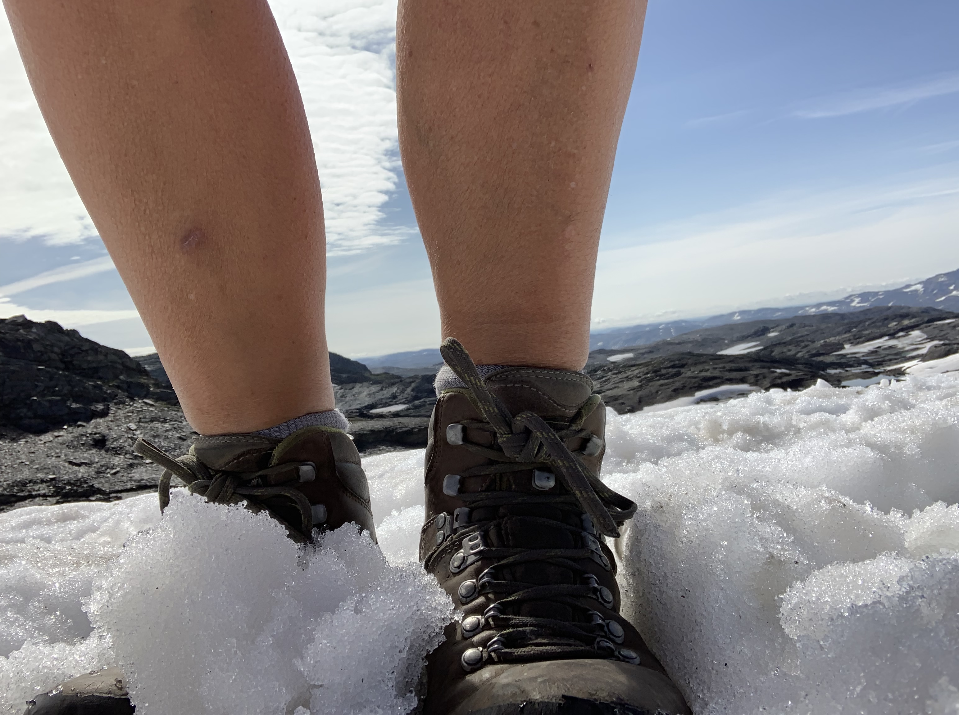 And of course the snowfields, my horror of the JMT in the High Siera is here totally safe to do, pfiewh! The first one is still frozen, that was the only scarry one…I do nót wanna fall!! There are people on the trail…i hear mostly Norwegian, specially when I pause they pass me but also when I am moving in my sluckpase (slakkengang). The estimate number of people during the whole day…30..all couples. Hardly anyone with a tent, so mostly nice little backpacks to carry. Age 0-70. They do not start a conversation…just “Heye”.