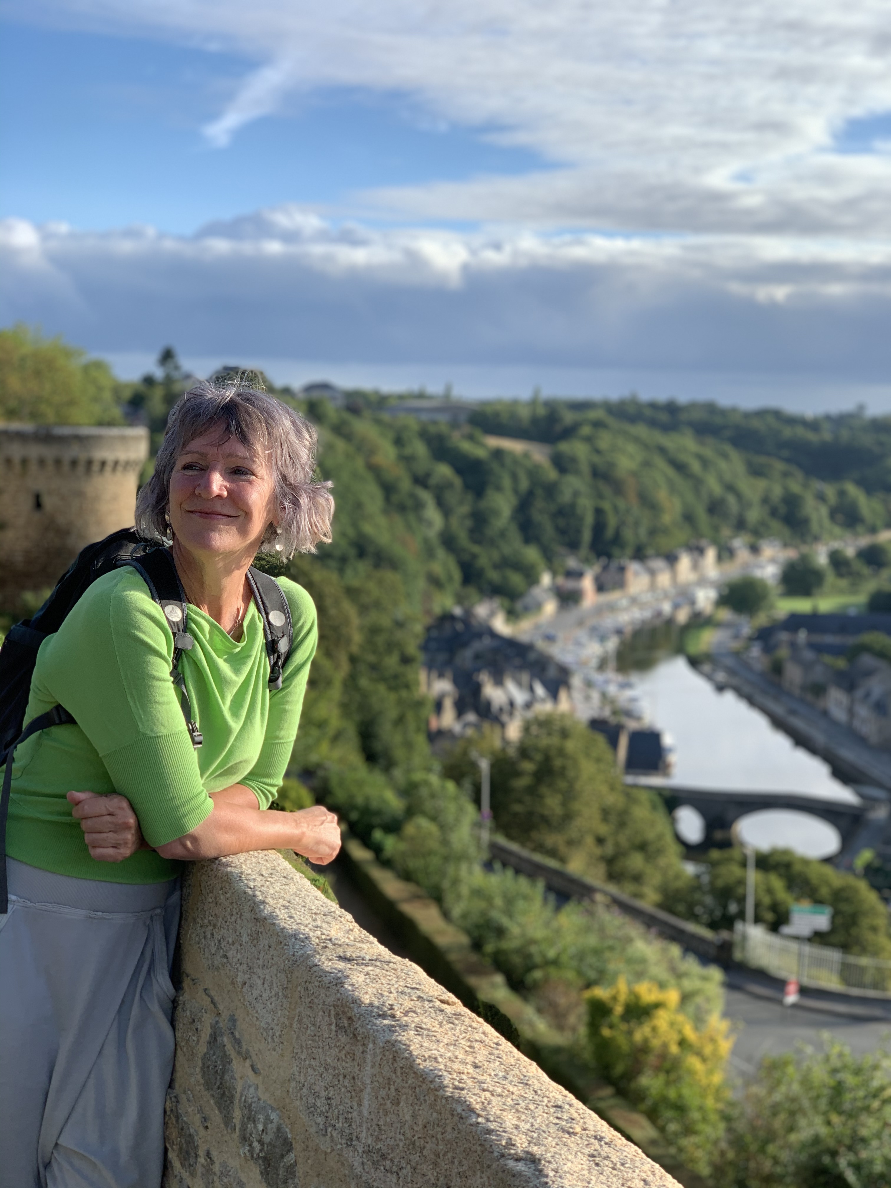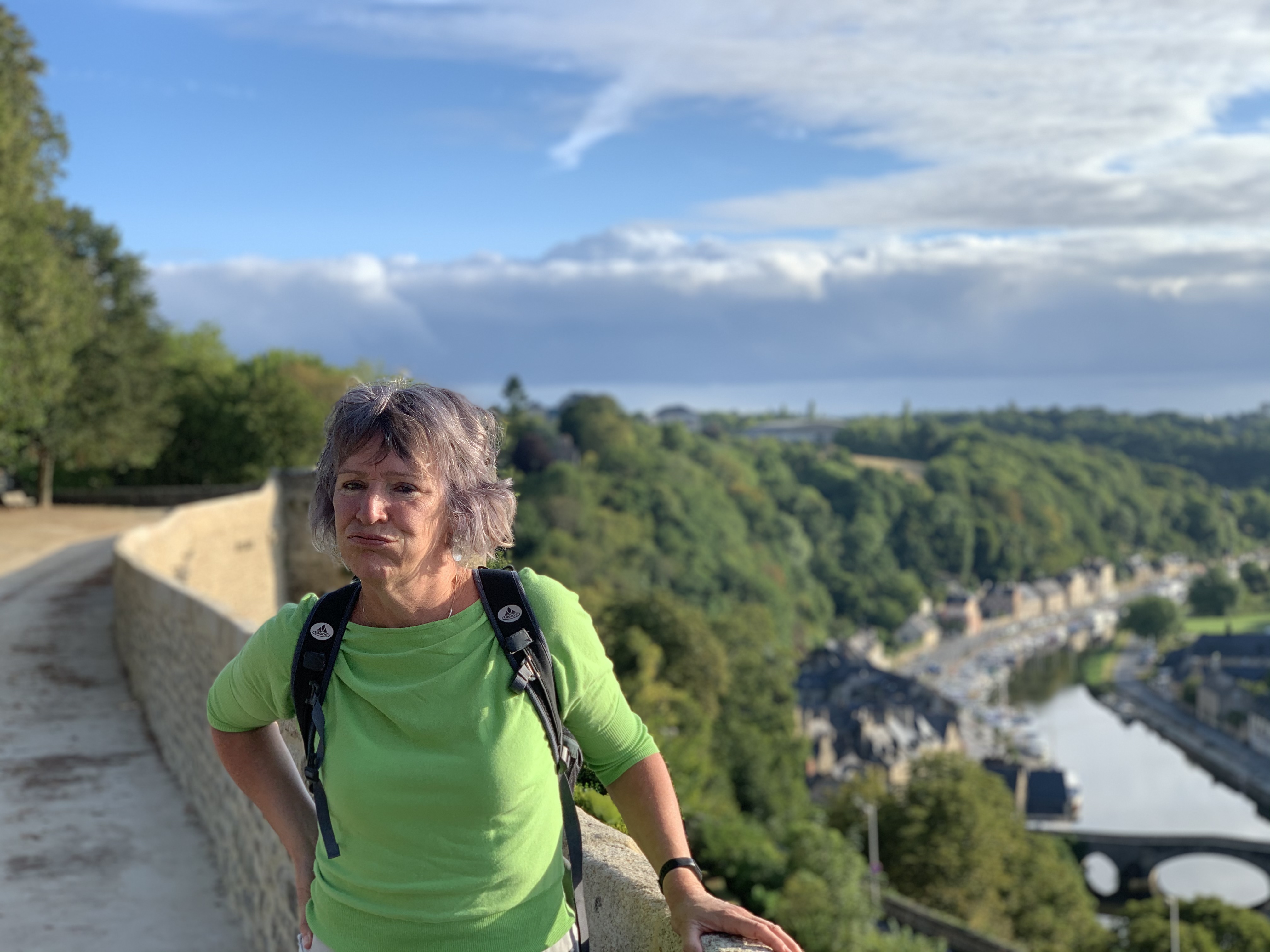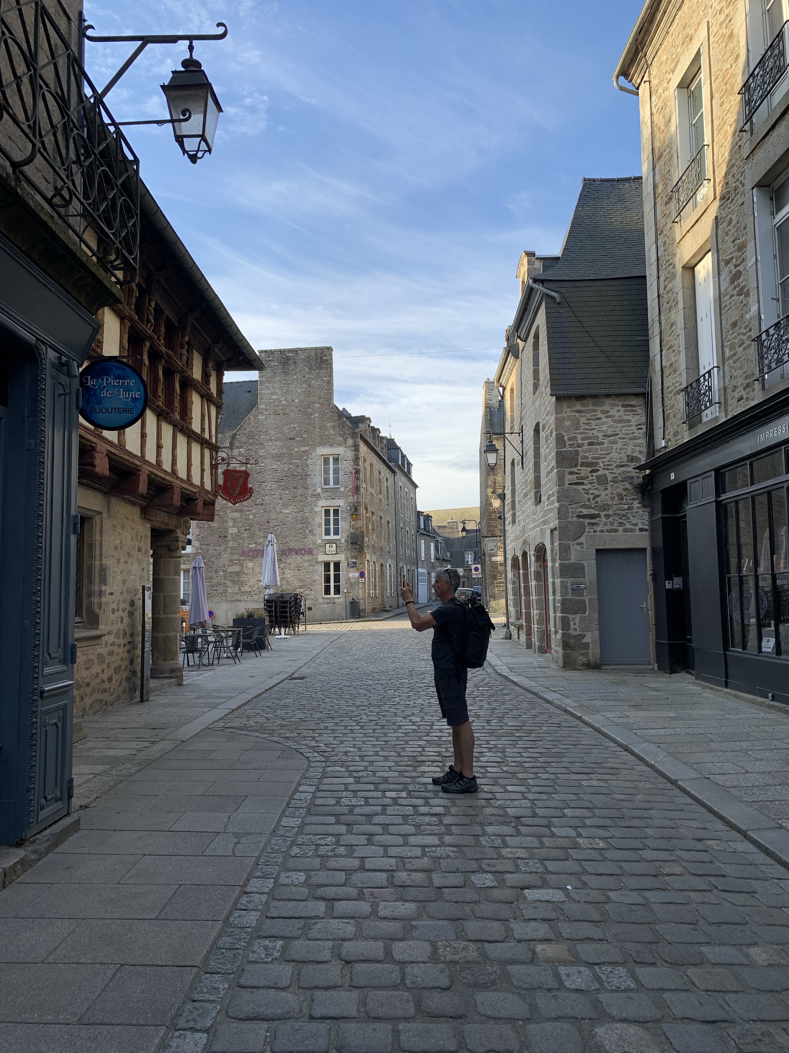 Eerste gok: Dinan. Bedoeld om even te landen na een lange reisdag in het westen. Ik had onderweg al gelezen dat Bretagne het één na populairste gebied is van Frankrijk. (Wat staat op nr 1 dan? De Zuidkust? De Alpen? De Pyreneeën?) Daar schrik ik dan wel meteen van…en stel meteen alle verwachtingen van verlaten stranden, kustwandelingen en mooie rustige dorpjes bij. Toeristen dus…. overal waarschijnlijk. Even tussendoor… Ik ben op het moment het boek van Ilja Leonard Pfeiffer “Grand hotel Europa” aan het lezen en denk net even anders over toeristen en mezelf nu haha…ik begrijp een hoop gebezigde begrippen van de schrijver niet, veel taal om de taal, zeker na een viertal makkelijk weglezende zomerboeken, maar lach me af en toe wel het schompus met zijn arrogante humor. Dat probeer ik dan weer te vertalen naar Paul om hem mee te laten lachen…maar dat is lastig hè, humor vertalen.