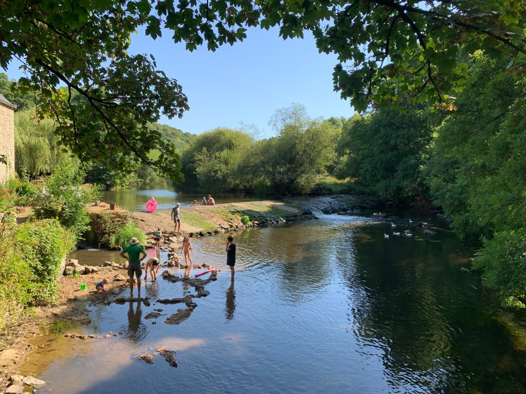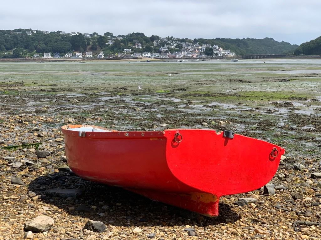 We vertrekken heel blij van Huttopia naar de volgende gok, camping Milin Kerhé in Pabu. Vooraf dacht ik dan vanuit deze standplaats de zuidkust nog te verkennen. Maar we willen helemaal niks meer verkennen…. we willen niks dóen. En dat lukt prima. Twee dagen lang lezen en nog meer lezen we op dit plekje. Goed verstopte camping, zeer simpel en wij zitten in het uiterste puntje op het laatst beschikbare stuk grond, zonder electriciteit….totale rust. Het is nog steeds perfect weer in Bretagne, geen hittegolf en geen regen. Warm, heel soms even heet, soms even bewolkt….we zijn de Nederlandse hittegolf mooi ontsprongen.