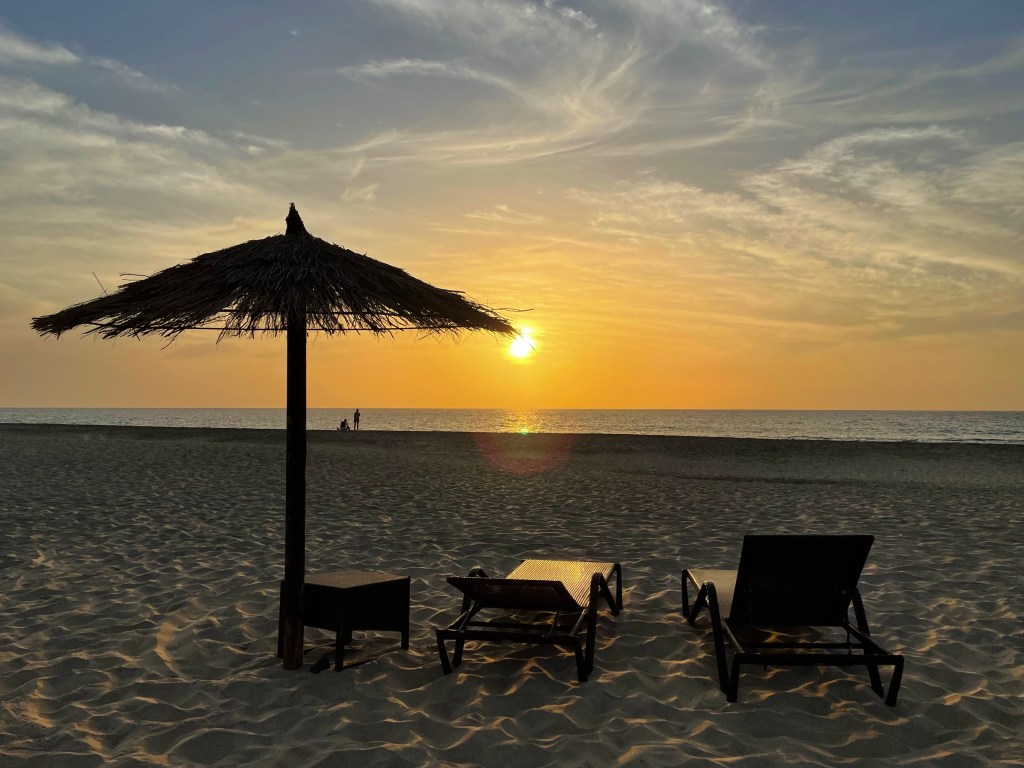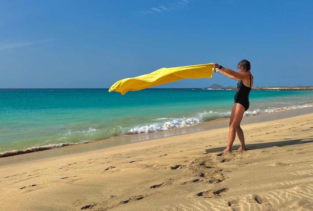De eerste dag lopen we meteen naar het strand. De omgeving beetje verkennen en over ons heen laten komen. We hebben geen plan. Dat was de bedoeling van deze trip… geen plan…geen doel…niks moet behaald worden..geen spanning of het wel zal gaan lukken…geen belasting op de knieën…geen grote rugzak mee ..Huh? Wat dan? Nou gewoon, een weekje vakantie! Uitrusten! Luieren, lezen, kletsen, zwemmen, liggen. Kan ik dat? Nou, dat gaan we zien.