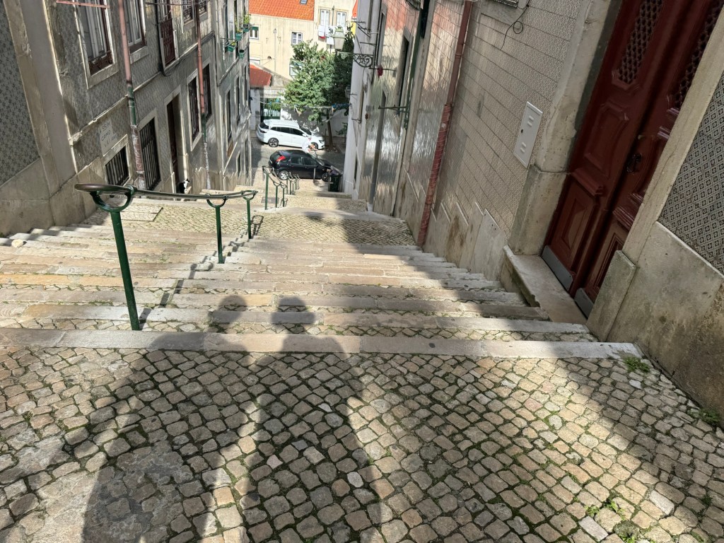 Bij elkaar een hele dag in Lissabon doorgebracht voor we door konden vliegen naar Santa. Ik had in een vlaag van kostenbesparing een hoStel geboekt. De entree was om te besterven, Pauls eerste hostelervaring éver…een vies miezerig trapje achterin een viezig miezerig winkeltje bracht ons 6 steile trappen verder naar onze privékamer. Maar achteraf bleek het een prima keus, prachtig uitzicht, prima bed en super rustig. En Paul bewijst alsmaar zijn waarde…. niks zeuren over het hostelleven…hij ziet overal iets positiefs in, wat ie ook dacht toen we de koffers die trappen op zeulden…haha…een slaapzaal zou misschien de limiet geweest zijn.