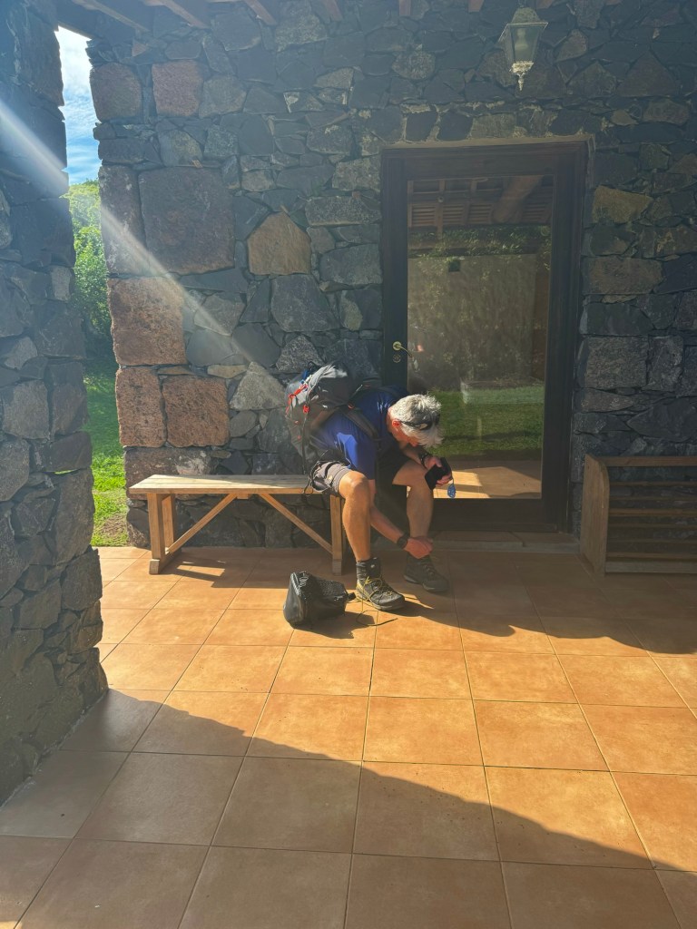 In oktober 2023 keek ik voor het eerst naar Floortje naar het einde van de wereld. Sinds ik met mijn UK Paul leef, is de Nederlandse tv uit mijn systeem. Op aanraden van mijn zoon toch maar es gaan kijken via npo+. Lukraak een seizoen uitgekozen en hoppa, de een na de andere avonturier kwam voorbij. Daar zit je dan op je bank…Toen bij Seizoen 7 een aflevering eindigde met een 5-daagse hike waarbij je in door hem zelf gebouwde hutjes sliep greep ik meteen mijn iphone en googlede deze wandeling. Dat wil ik ook…en Paul wilde mee! Een paar weken later had ik geboekt. Het viel niet mee contact te krijgen met meneer Ioannes, de hutjes waren al een jaar vooruit volgeboekt (tijdens schoolvakanties) en hij raadde ons zelfs af eind oktober nog te gaan….vanwege storm en regen in deze periode. Ik vond een jaar wachten lang genoeg, dus ik schreef WIJ KOMEN.
