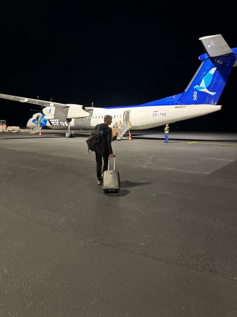 Nu is daar komen niet héél makkelijk. Je móet in Lissabon overnachten op heen en terugreis…een beetje krap in een weekje herfstvakantie…maar het ging net. Santa Maria is het meest zuidelijke eilandje van de Azoren en valt buiten elk toeristisch aanbod. Goed gevonden van die Floortje. Ik heb me deze week afgevraagd hoe het zou hebben gewerkt. Ik denk dat de vrouw van deze Ioannis hem heeft aangemeld. Sinds het is uitgezonden is er een constante aanwas van reisluchtige Hollanders geweest in zijn hutjes. Het koppel met 2 kindjes heeft er denk ik al zoveel aan verdiend dat ze nu zelf voor 2 jaar vertrokken zijn op wereldreis. Jammer, ik had ze graag ontmoet…en allerlei vragen gesteld.