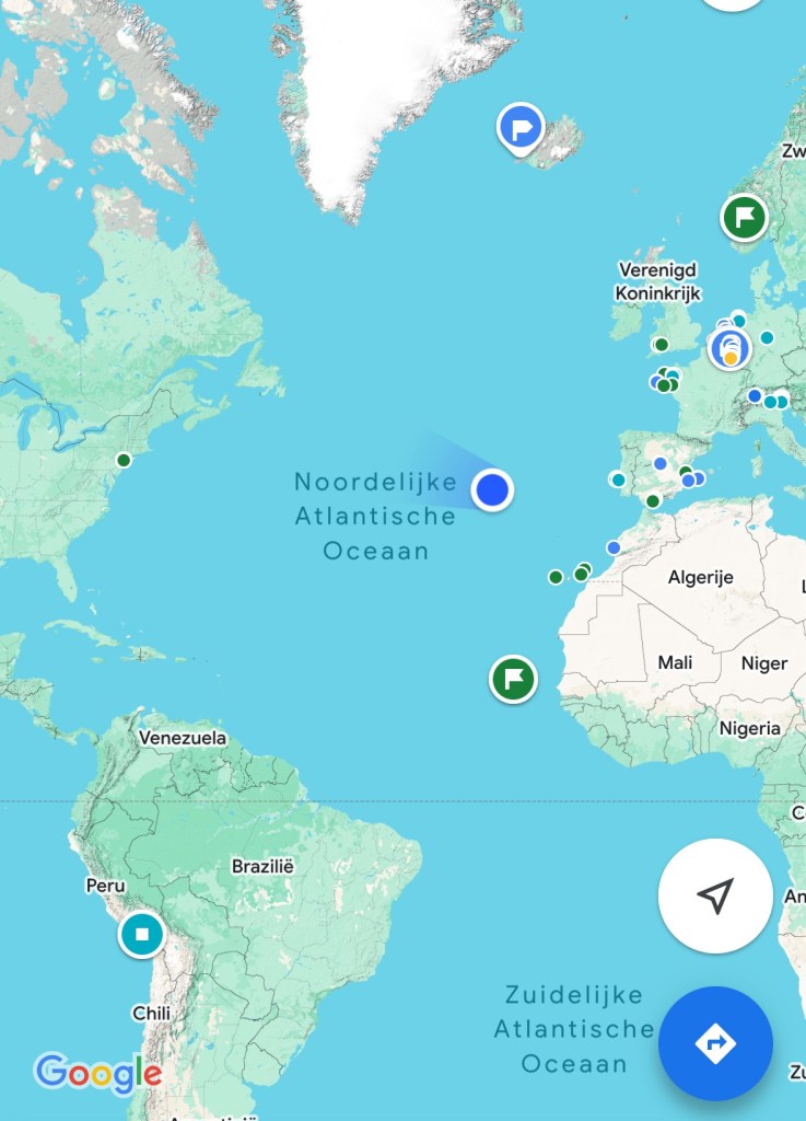 De Azoren liggen een stuk noordelijker dan de Kaapverdische en Canarische eilanden. Ter hoogte van NYC en Lissabon en recht onder Ijsland.