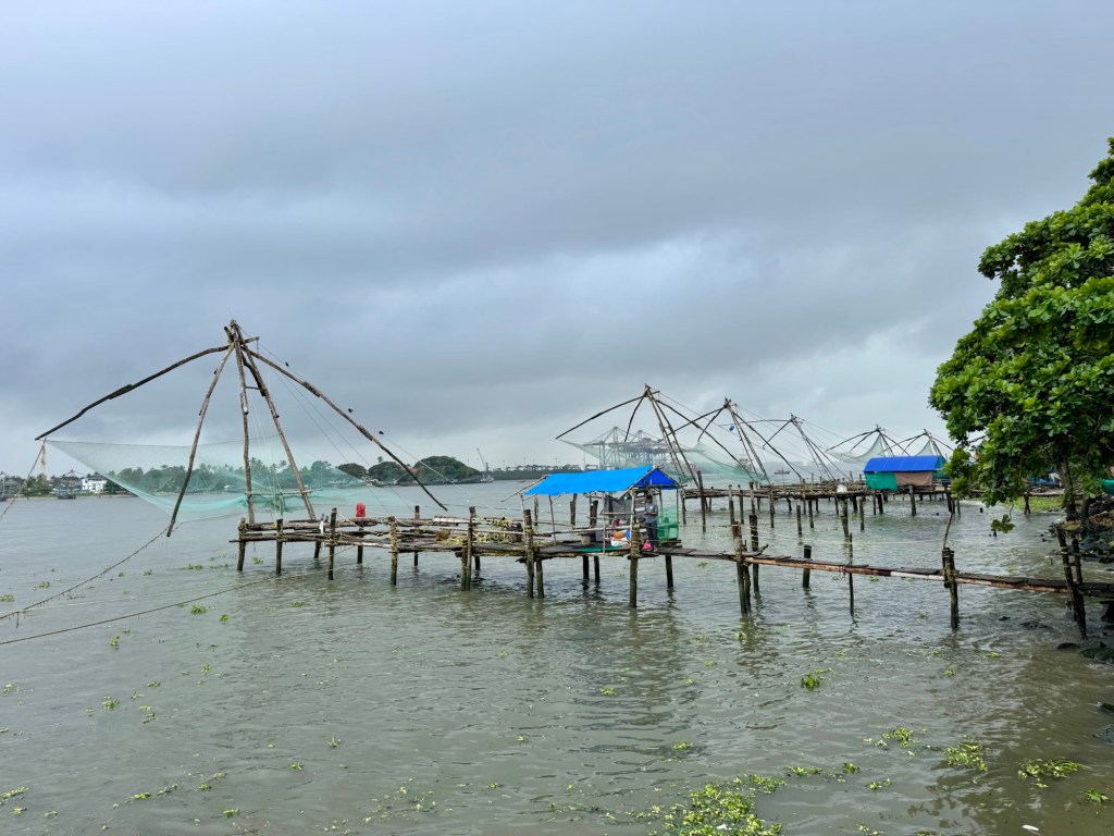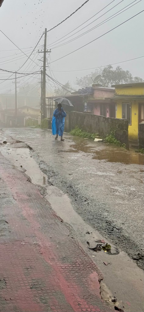 Ik was thuis waarschijnlijk bang dat ik niks van India mee zou krijgen in mijn eerste twee weken bij Softouch en vroeg chatgpt wat ik kon doen in een week daarna, niet wetende hoe we ons zouden voelen. De tip om Vagamon en daarna Munnar te bezoeken hebben we ter harte genomen en als toetje Fort Kochi voor een beetje luxe westers toerist gevoel. We verlieten Softouch in de regen en hebben 3 uur in de regen gereden langs een aaneenschakeling van kraampjes langs de wegen, “dorpjes”, schuurtjes, onderkomens. Indruk van dit stukje India, best armoedig allemaal of is dit Ram modaal, een rotzooi of is dit de norm hier…Ik vind het een zootje, vies, rommelig… En met al die regen erbij ook modderig. Maar de mensen zijn relaxed en vriendelijk, lachen me altijd tegemoet, voor hun is het wellicht een prachtig rustig deel van India waar ook veel Indiërs op vakantie komen.