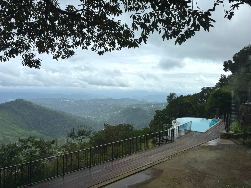 We moeten ons best doen niet misselijk te worden achterin. We rijden door heuvelachtig gebied, één lange kronkelweg met héél veel getoeter, steeds meer uitzicht ook….in principe…want vooral mist gezien…Dezelfde indruk qua levensstijl rondom al die kraampjes langs de weg. We kropen naar 1600m hoogte en bij het uitstappen was het nog kouder en vochtiger dan in Vagemon. Wel een hele mooie plek gelukkig niet ver van Munnar vandaan. Meteen een kacheltje gevraagd ook om het vocht te verdrijven uit ons hutje. Er is een heerlijk restaurant, een prachtig gelegen zwembad (ik hou alleen zelf niet van zwemmen in mijn te strakke oncomfortabele zwempak én het was ook te koud).