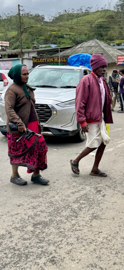 We hadden nog één dag te gaan en het was wéér droog. Een compleet ander gevoel, warmer ook….heerlijk! Een theefabriek stond op het lijstje. Helaas waren de mooiste twee fabrieken onbereikbaar door een grote landslide. We kozen een privé jeeptour omdat….ie werd aangeboden haha….een tuktuk ging zo hoog niet. De prijs schoot wel van INR300 (€3) naar INR2500 (=€25) om ons naar 2000m te brengen naar Top Station viewpont. We kregen hem+jeep voor de hele dag. Hilarische tour, hij stopte om de haverklap op de meest lelijke oninteressante plekken waar we in het begin ook nog braaf uitstapten (een aftands soort tuincentrum met amper bloeiend spul, een meertje waar je een boottochtje kon maken, een dam, nog een watertje…toen hij ons wilde dumpen op een plek waar je op de rug van een olifant een rondje kon maken, hebben we gezegd dat we niet meer wilden stoppen op weg naar boven, alleen als wij iets moois zagen….Bij elke plek stonden ook dezelfde tientallen kraampjes met dezelfde spullen. Net als in Nepal….wie verkoopt hier toch ooit wat van…. ?? Eten en drinken op straat valt helaas af, we wilden niet meteen een vieze bacterie-infectie in onze schone darmen…..en souvenirs hebben we ook al afgeleerd, iets leuks hier is troep thuis.